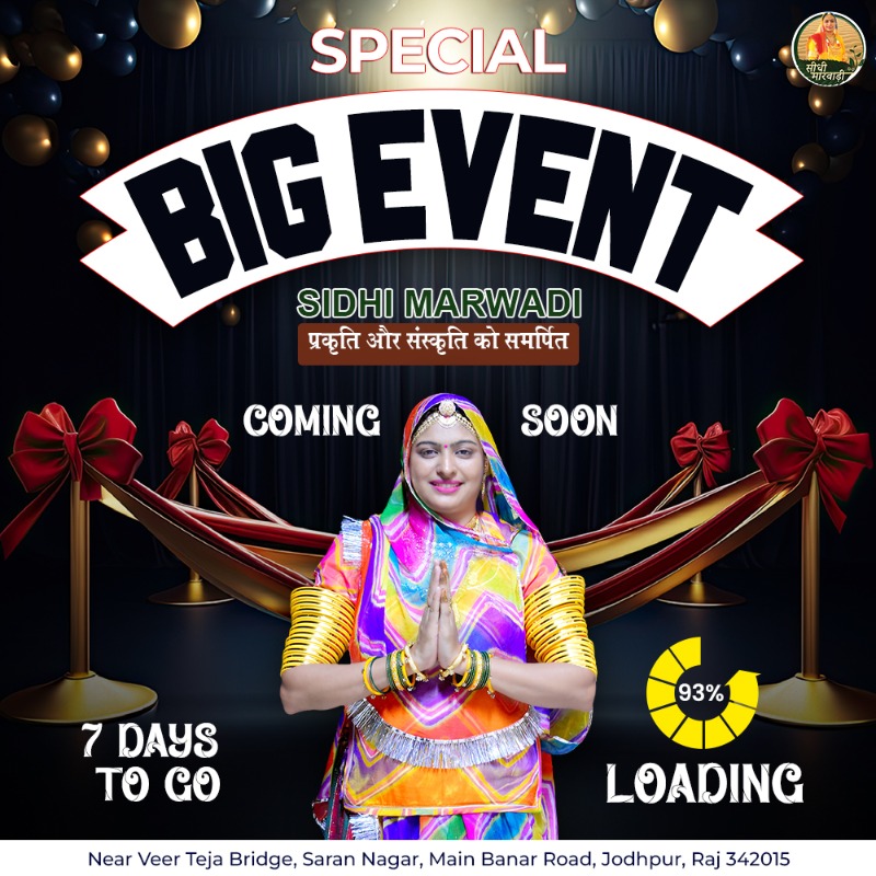 рдЬреАрд╡рди рдХреА рдЗрд╕ рдмрдбрд╝реА рдШрдбрд╝реА рдореЗрдВ, рд╣рд░ рдЦреНрд╡рд╛рдм рд╕рдЪ рдХрд░рдиреЗ рдХрд╛ рдЕрд╡рд╕рд░ рд╣реИред рд╣реМрд╕рд▓рд╛ рдмреБрд▓рдВрдж рд░рдЦреЛ, рдЕрдкрдиреА рдордВрдЬрд╝рд┐рд▓ рдХреЛ рдкрд╛рдиреЗ рдХрд╛, рдЗрд╕ рд╕рдлрд░ рдореЗрдВ рдЬреАрдд рдХрд╛ рд╕реНрд╡рд╛рдж рдЕрдирдЧрд┐рдирдд рд╣реИ..!! рд╕рд┐рдзреА рдорд╛рд░рд╡рд╛рдбрд╝реА рдХрдореНрдкрдиреА рдХрд╛ OFFICIAL LAUNCHING EVENT рдФрд░ CREATORS MEET 2024 рдХрд╛ рдЖрдпреЛрдЬрди 7 рдЬреБрд▓рд╛рдИ рдХреЛ рдЬреЛрдзрдкреБрд░ рдореЗрдВ рд╣реЛрдиреЗ рдЬрд╛ рд░рд╣рд╛ рд╣реИЁЯдЧЁЯТРЁЯОЙЁЯОК рдЗрд╕ рдЦрд╛рд╕ рдореМрдХреЗ рдкрд░ рдЖрдк рд╕рдм рднреА рд╣рдорд╛рд░реА рдЦреБрд╢реА рдореЗрдВ рд╢рд╛рдорд┐рд▓ рд╣реЛрдиреЗ рдЖрдПрдВрдЧреЗ рдирд╛...? 2 PM, 7 рдЬреБрд▓рд╛рдИ 2024, рд░рд╡рд┐рд╡рд╛рд░, SIDHI MARWADI HEAD OFFICE, SARAN NAGAR, NEAR VEER TEJAJI BRIDGE, MAIN BANAR ROAD, JODHPUR, RAJASTHAN