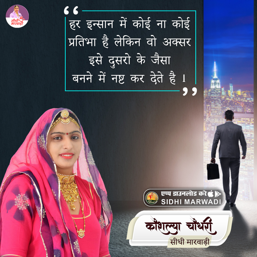 рд╣рд░ рдЗрдиреНрд╕рд╛рди рдореЗрдВ рдХреЛрдИ рдирд╛ рдХреЛрдИ рдкреНрд░рддрд┐рднрд╛ рд╣реИ рд▓реЗрдХрд┐рди рд╡реЛ рдЕрдХреНрд╕рд░ рдЗрд╕реЗ рджреБрд╕рд░реЛ рдХреЗ рдЬреИрд╕рд╛ рдмрдирдиреЗ рдореЗрдВ рдирд╖реНрдЯ рдХрд░ рджреЗрддреЗ рд╣реИ