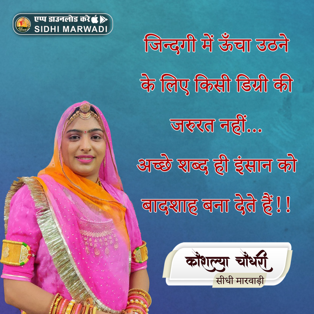 рдЬрд┐рдиреНрджрдЧреА рдореЗрдВ рдКрдБрдЪрд╛ рдЙрдардиреЗ рдХреЗ рд▓рд┐рдП рдХрд┐рд╕реА рдбрд┐рдЧреНрд░реА рдХреА рдЬрд░реБрд░рдд рдирд╣реАрдВ... рдЕрдЪреНрдЫреЗ рд╢рдмреНрдж рд╣реА рдЗрдВрд╕рд╛рди рдХреЛ рдмрд╛рджрд╢рд╛рд╣ рдмрдирд╛ рджреЗрддреЗ рд╣реИрдВ!!