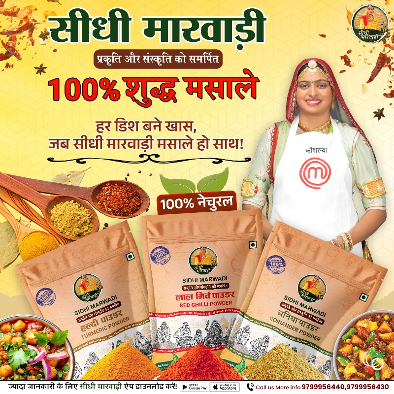 पारंपरिक प्रक्रिया द्वारा तैयार सीधी मारवाड़ी शुद्ध मसाले अपनी शुद्धता और गुणवत्ता के लिए जाने जाते है इसमें किसी भी प्रकार के हानिकारक पदार्थ शामिल नहीं है।
