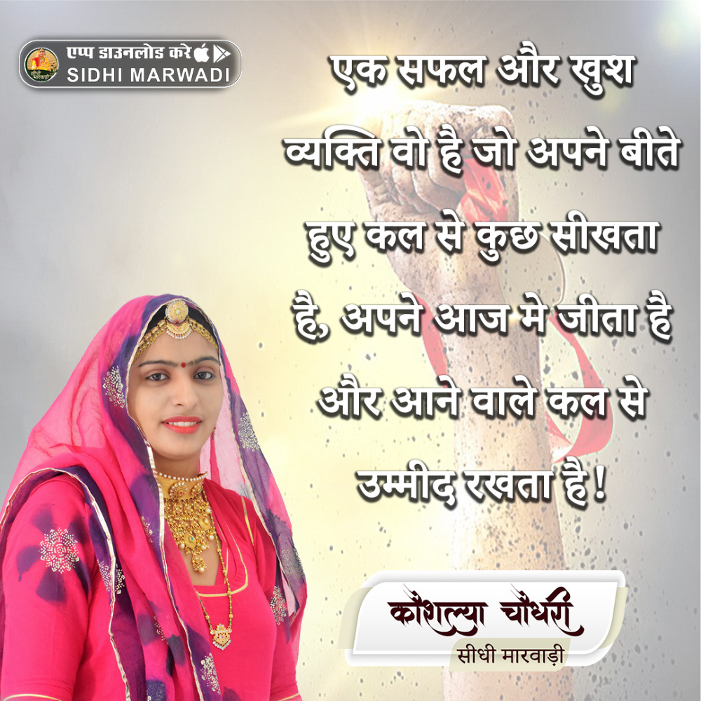 एक सफल और खुश व्यक्ति वो है जो अपने बीते हुए कल से कुछ सीखता है, अपने आज मे जीता है और आने वाले कल से उम्मीद रखता है!