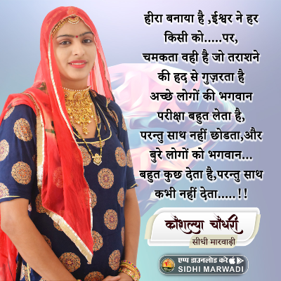 हीरा बनाया है ,ईश्वर ने हर किसी को.....पर, चमकता वही है जो तराशने की हद से गुज़रता है अच्छे लोगों की भगवान परीक्षा बहुत लेता है, परन्तु साथ नहीं छोडता,और बुरे लोगों को भगवान... बहुत कुछ देता है,परन्तु साथ कभी नहीं देता.....!!
