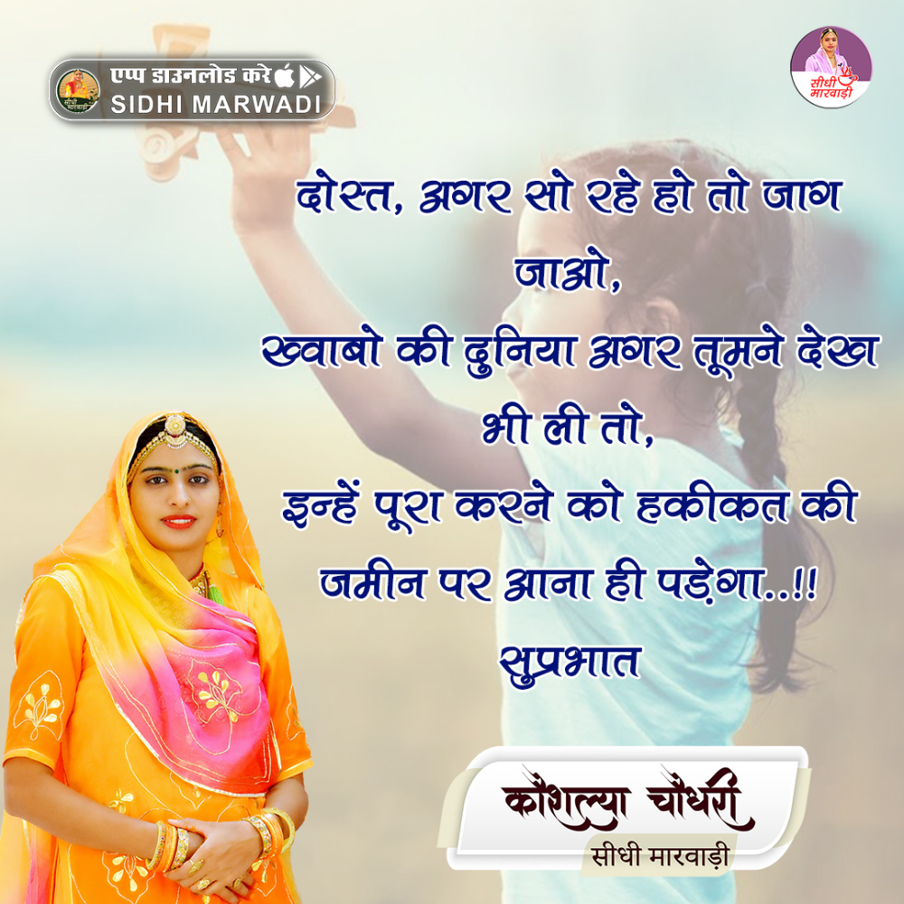 दोस्त, अगर सो रहे हो तो जाग जाओ, ख्वाबो की दुनिया अगर तूमने देख भी ली तो, इन्हें पूरा करने को हकीकत की जमीन पर आना ही पड़ेगा..!! सुप्रभात
