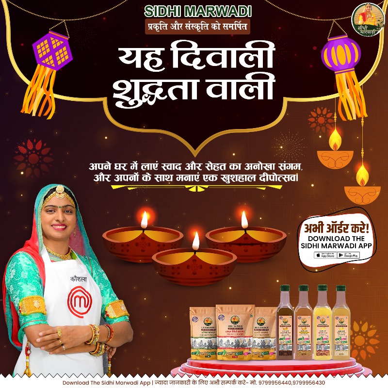इसलिये इस दीपावली पर मिलावट से दूर और सेहत के करीब आएं। Sidhi Marwadi के मसाले व कच्ची घाणी तेल खरीदने के लिये अभी Online Order करें !