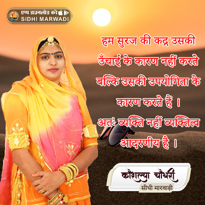 हम सुरज की कद्र उसकी उँचाई के कारण नहीं करते बल्कि उसकी उपयोगिता के कारण करते हैं । अतः व्यक्ति नहीं व्यक्तित्व आदरणीय है ।
